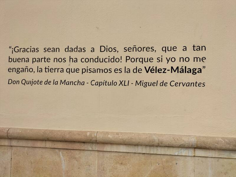 Mi amiga Carmen me remite desde Vélez-Málaga esta imagen de una preciosa escultura, con la que se honra a Cervantes, quien inmortalizó en el Quijote el nombre de esta bella localidad. Me gusta que manden fotografías de esculturas cervantinas, pero lo que realmente me conmueve es que se acuerden de mí y que, de alguna forma, me asocien al caballero andante y a su autor, como yo me acuerdo y le asocio a él con mi padre. Me han remitido también el texto de la placa. Qué escultura tan bonita. La belleza y la belleza son siempre transparentes, como este don Quijote.. Sí, Dios bendiga a nuestros amigos. Don Quijote y Sancho terminaron siendo amigos, pese a la diferencia de clase social. Uno de las mezquindades de Avellenada en su prólogo es haber afirmado que Cervantes no tenía amigos. ¿Y nosotros acaso no lo somos?